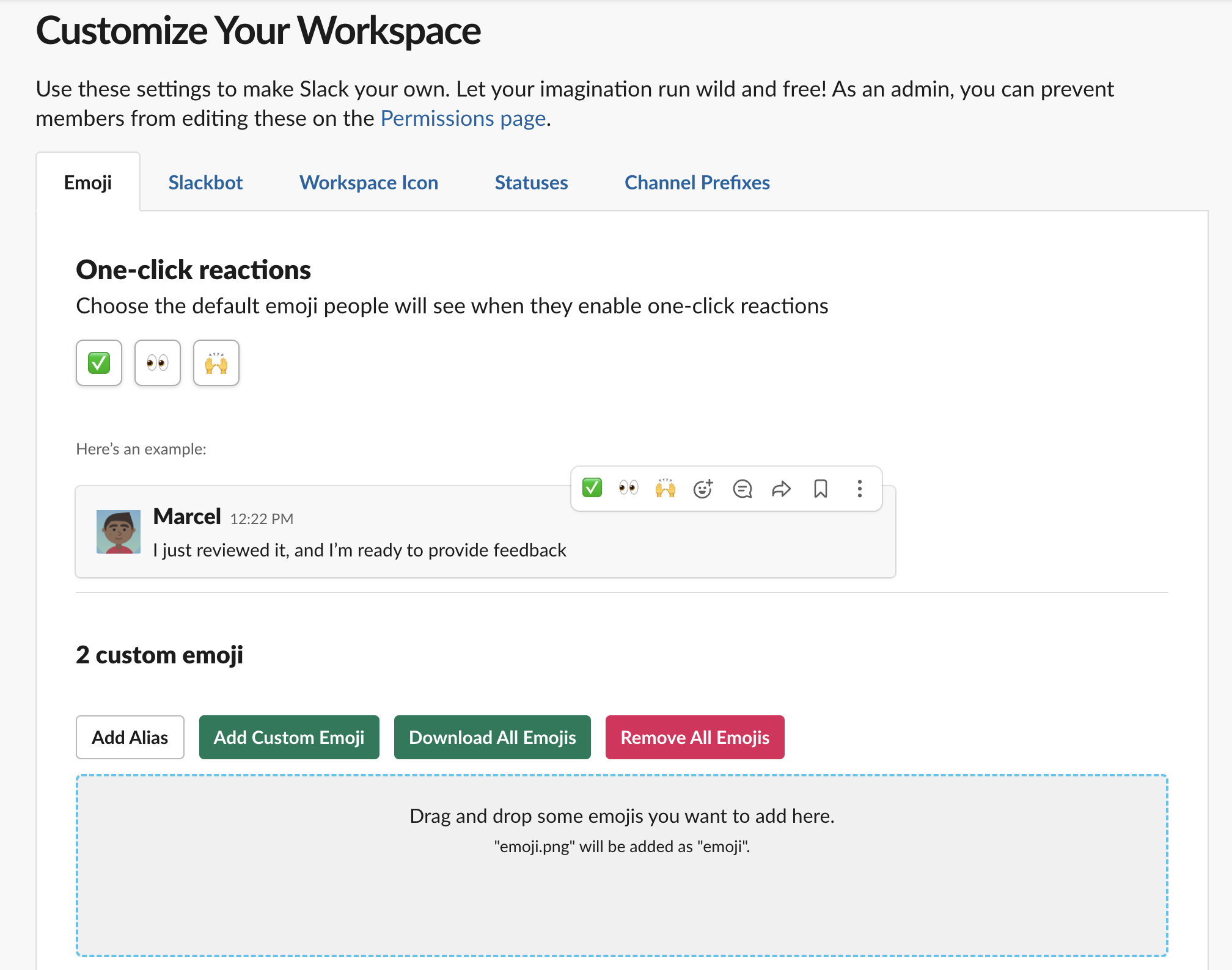 * With the Chrome extension installed, you’ll see a “Download All Emojis” button on the customization page.